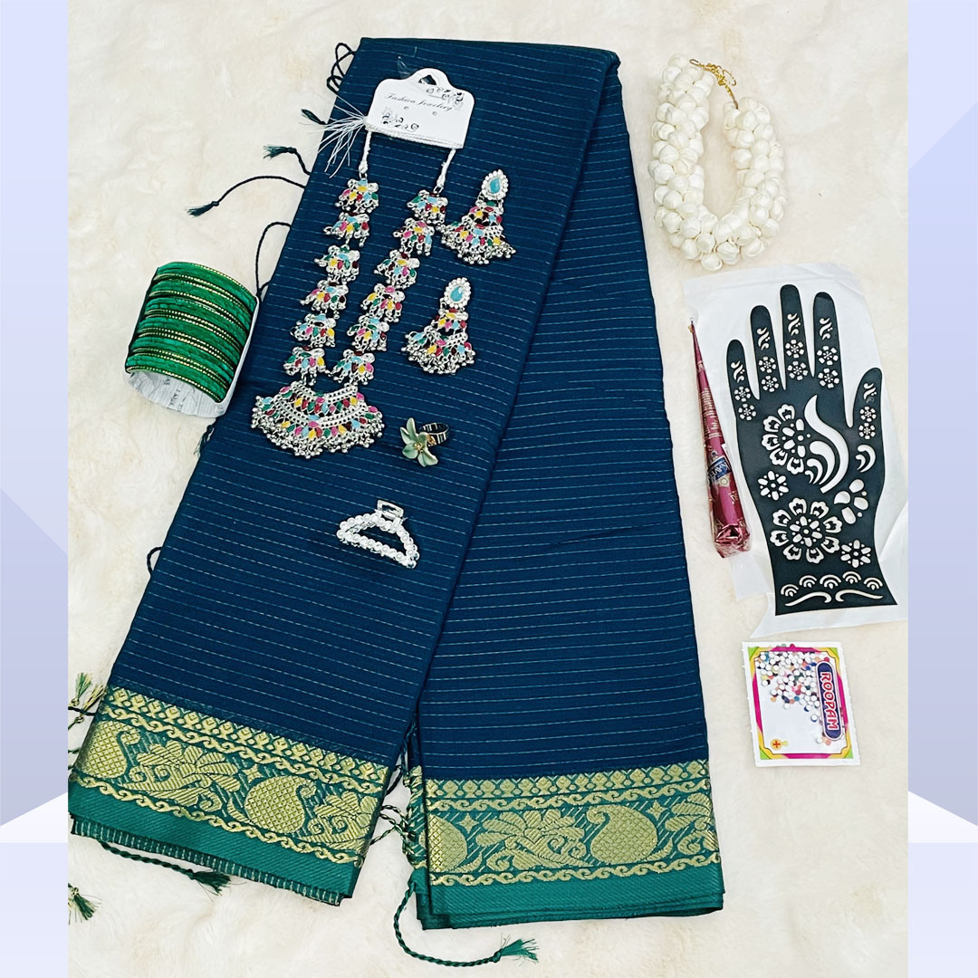 কটন শাড়ি, জুয়েলারি সেট, চুড়িসহ ফুল কম্বো প্যাকেজ