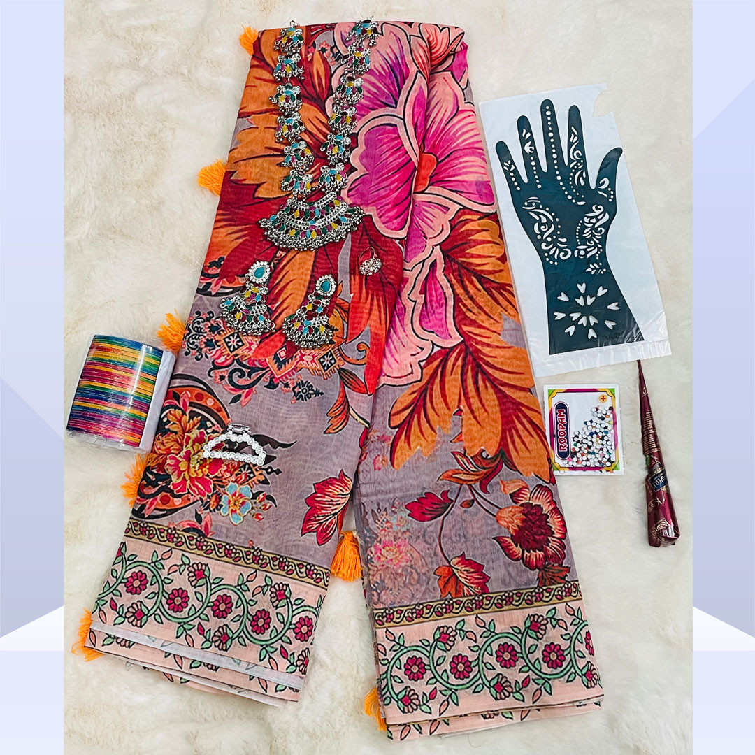 প্রিমিয়াম সিল্ক ডিজিটাল প্রিন্ট শাড়ি কম্বো প্যাকেজ