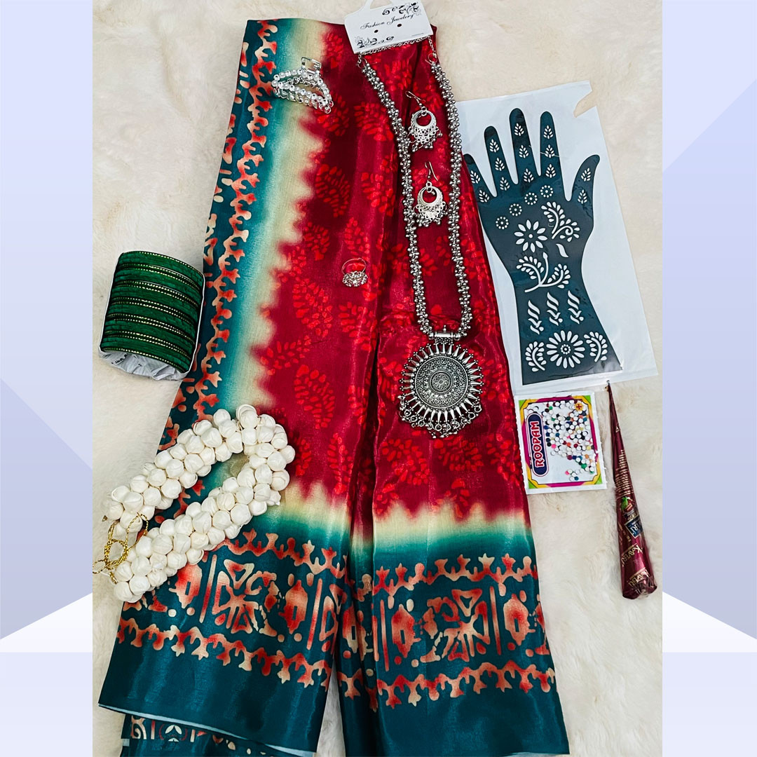 প্রিমিয়াম সিল্ক ডিজিটাল প্রিন্ট শাড়ি কম্বো প্যাকেজ