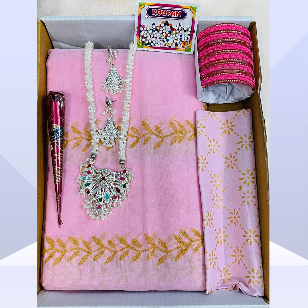 সেমি মসলিন হাফ সিল্ক শাড়ি কম্বো প্যাকেজ